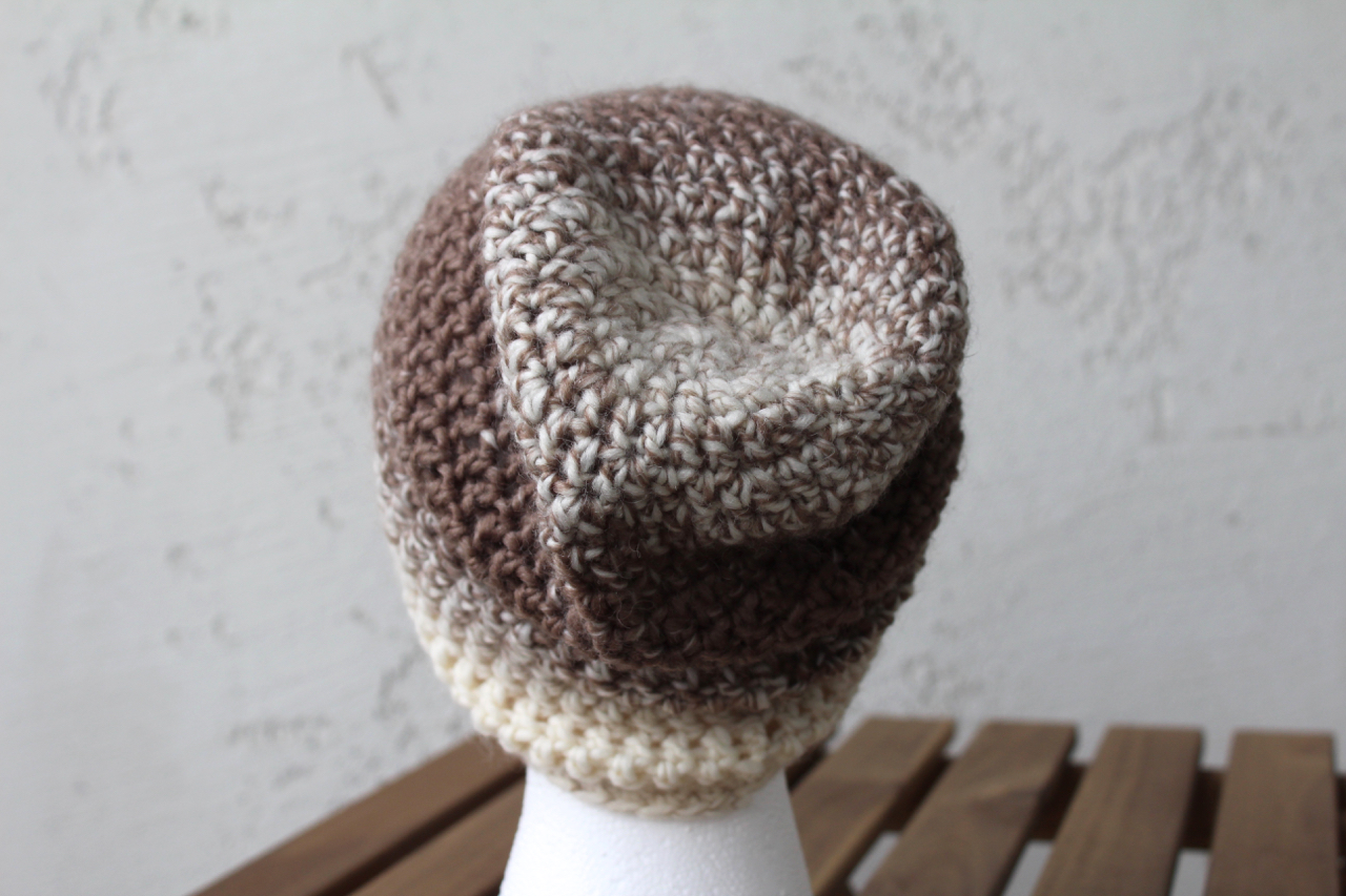 Shop update: Variegated cream and taupe crocheted unisex slouchy wool blend beanie