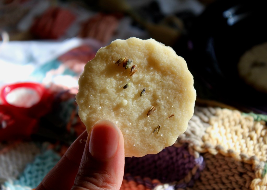 Gently incorporate the vanilla and lemon zest into the creamed butter/sugar mixture until combined. Sift ground lavender into bowl and discard the few reedy bits that were too large to sift through (these will add an unpleasant texture to the cookie and too much floral flavoring).